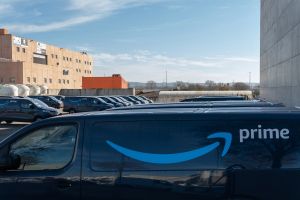 Delivery vans of the multinational company Amazon Prime